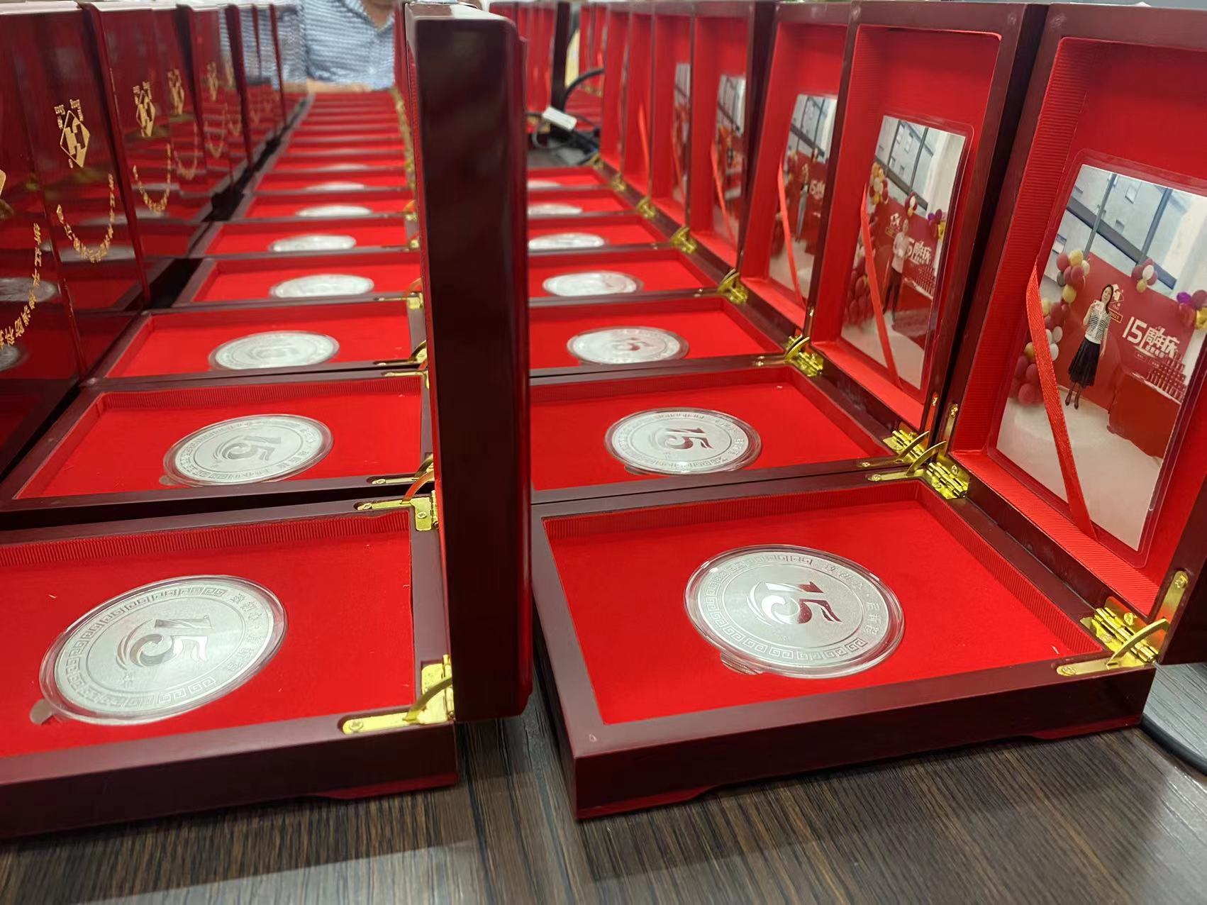慶祝華神成立15周年的同時(shí)董事長(zhǎng)周建國(guó)、總經(jīng)理周斌和副總經(jīng)理周曉蓉為每位員工頒發(fā)了華神十五周年紀(jì)念幣,鼓勵(lì)大家繼續(xù)團(tuán)結(jié)、勤奮、敬業(yè)、忠誠(chéng)、熱情和智慧,譜寫下一個(gè)十五年的歲月華章。